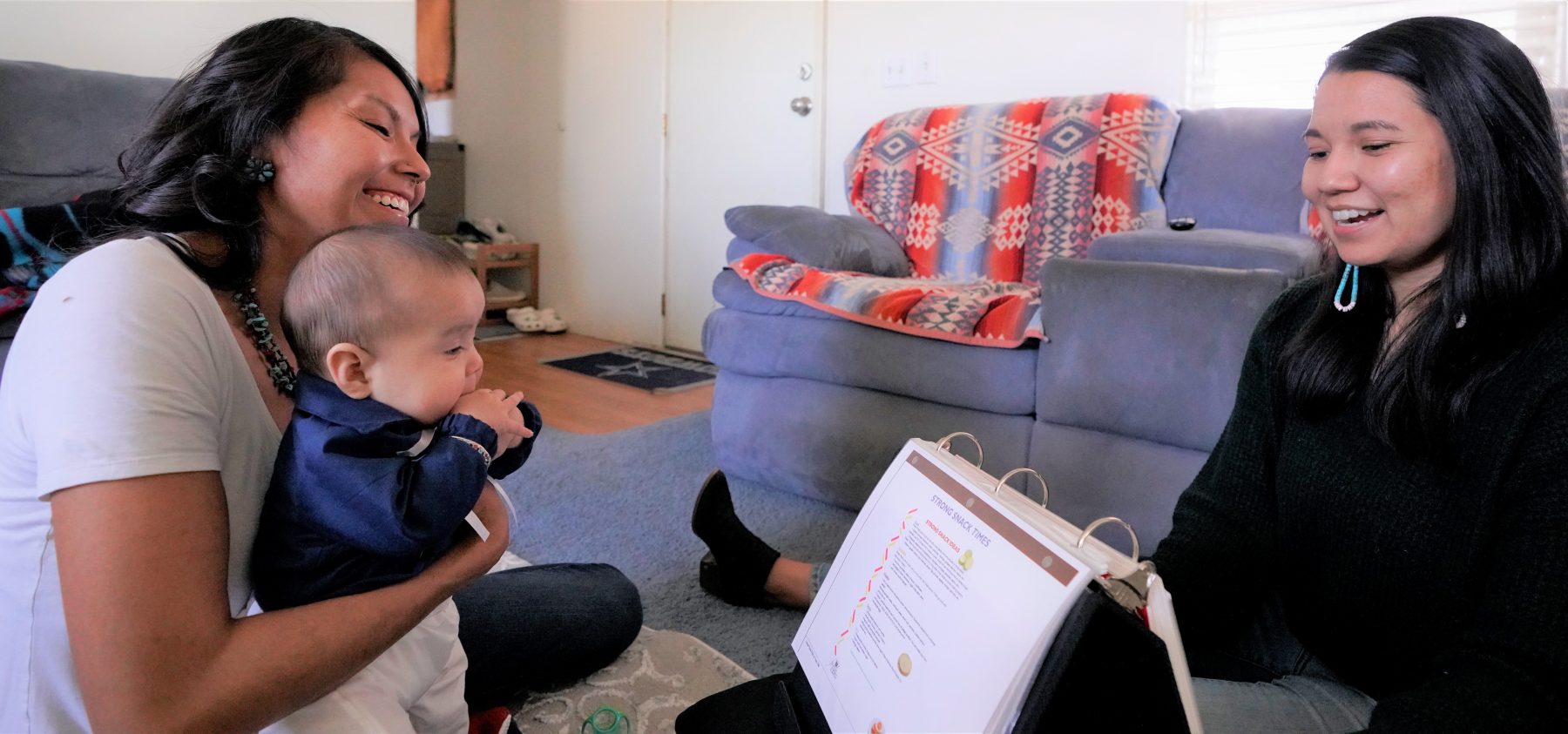 Family Spirit Nurture is a home visiting module designed for and with Native American families to promote healthy infant feeding and growth in the first year of life and reduce early childhood obesity risk. The culturally based, strengths-based lessons focus on moderating sugar intake, best infant responsive feeding practices, and healthy eating for the whole family. Designed to be taught between 3-6 months postpartum, the module can be taught as a stand-alone module, or within a broader home visiting or health education program. The program is designed to be delivered by trained paraprofessionals from the local community who develop strong relationships and rapport with participating families. The Family Spirit Nurture lessons are a supplemental module of the evidence-based Family Spirit home visiting model.